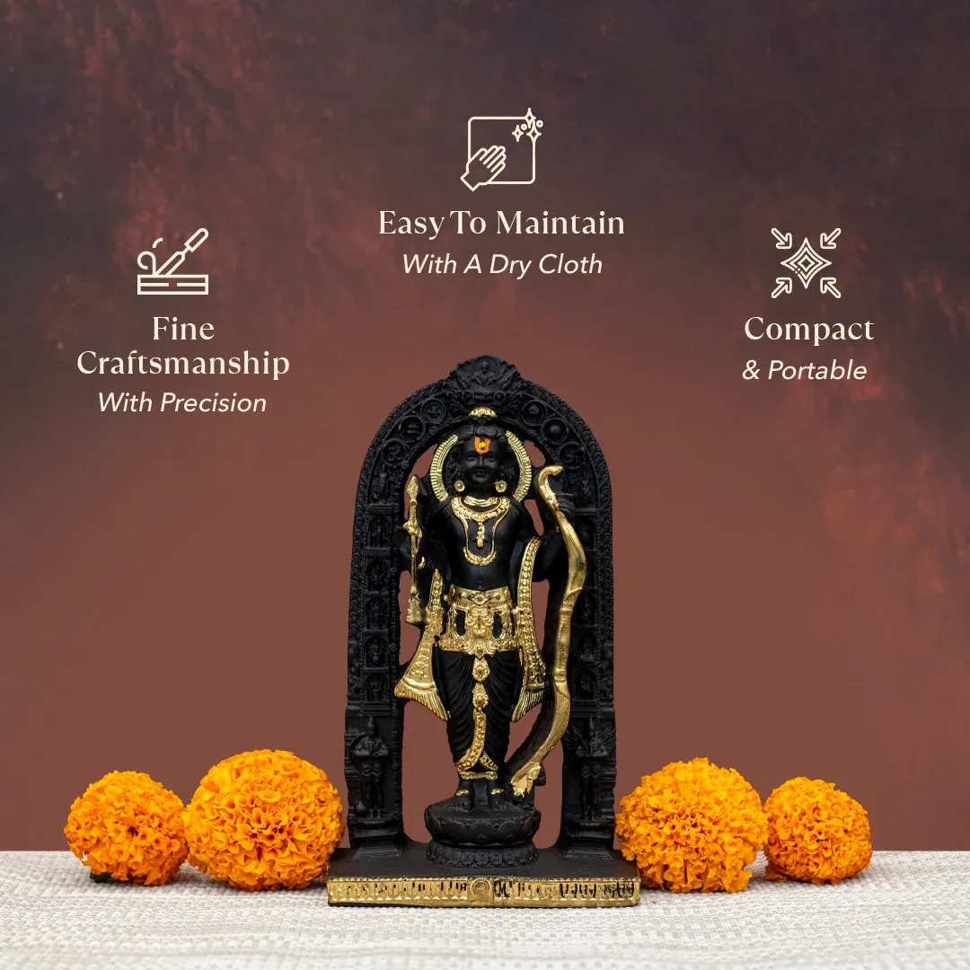 Bring home the sacred presence of Shree Ram Lalla Murti and infuse your space with divine strength, serenity, and righteousness. Inspired by the revered Shree Ram Lalla Murti of Ayodhya, this intricately crafted idol depicts Lord Ram in a majestic standing posture with bow and arrow, embodying courage, discipline, and dharma.