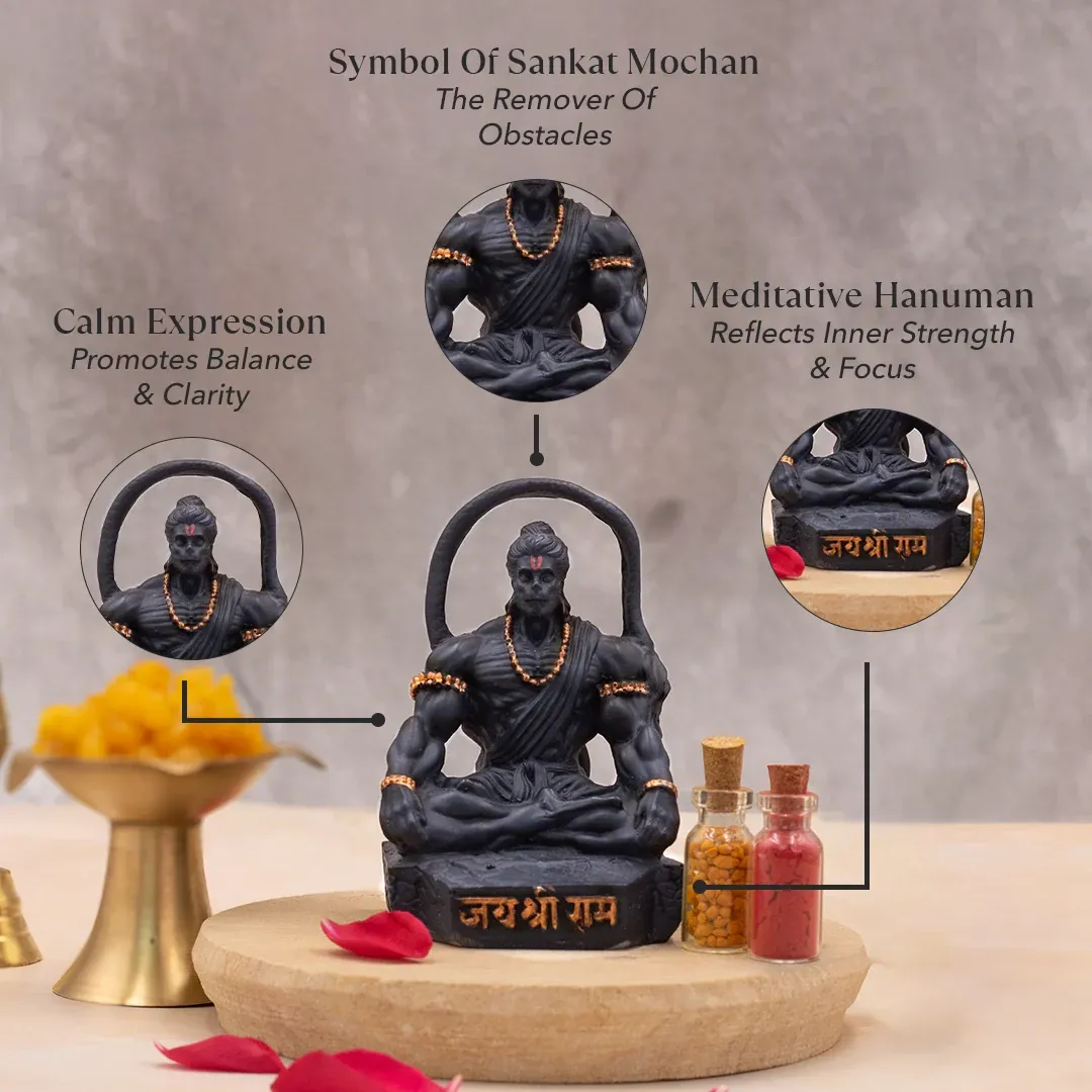 Bring home the divine energy of Sankat Mochan Hanuman Ji in a meditative pose, symbolizing strength, devotion, and mental clarity. This beautifully designed idol radiates calm energy while empowering you to face challenges with resilience. Perfect as a Hanuman Ji Murti for home, office, study desk, or meditation space, it serves as a constant reminder of Lord Hanuman’s unwavering courage and focus.
