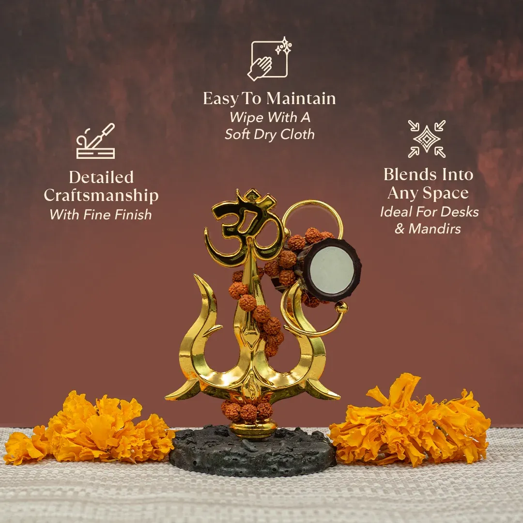 Channel divine energy and protection into your space with this beautifully crafted Mahadev Trishul Idol. Designed in gleaming brass with Damru, Rudraksha beads, and the sacred Om symbol, it represents cosmic balance, focus, and spiritual strength. More than just décor, this sacred Trishul is a reminder of Lord Shiva’s presence, resilience, and unwavering protection—perfect for your pooja room, meditation corner, office desk, or living space.